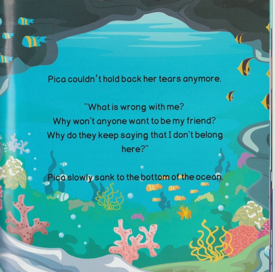 Pica struggles to find new friends in the ocean. When Pica finally finds one, she learns a hard truth about herself. A story about friendship and acceptance, with a bigger message at the end.