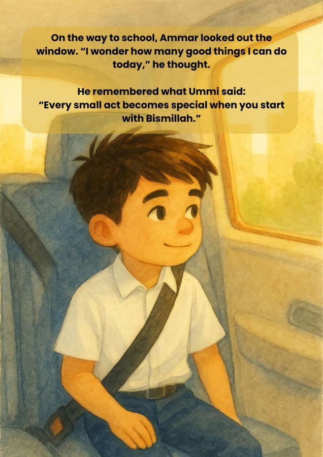 Join Ammar as he discovers the beauty of saying Bismillah before doing anything good. A gentle story that inspires gratitude, kindness and love for the Sunnah in everyday moments.